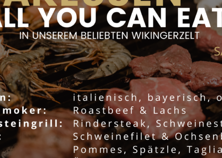 Am Pfingstsonntag, den 31.05.2020, Beginn: 17:00 Uhr, findet ENDLICH wieder unser beliebtes Steakbuffet im Wikingerzelt statt.
