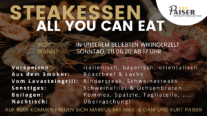 Steakessen – all you can eat – in unserem Wikingerzelt